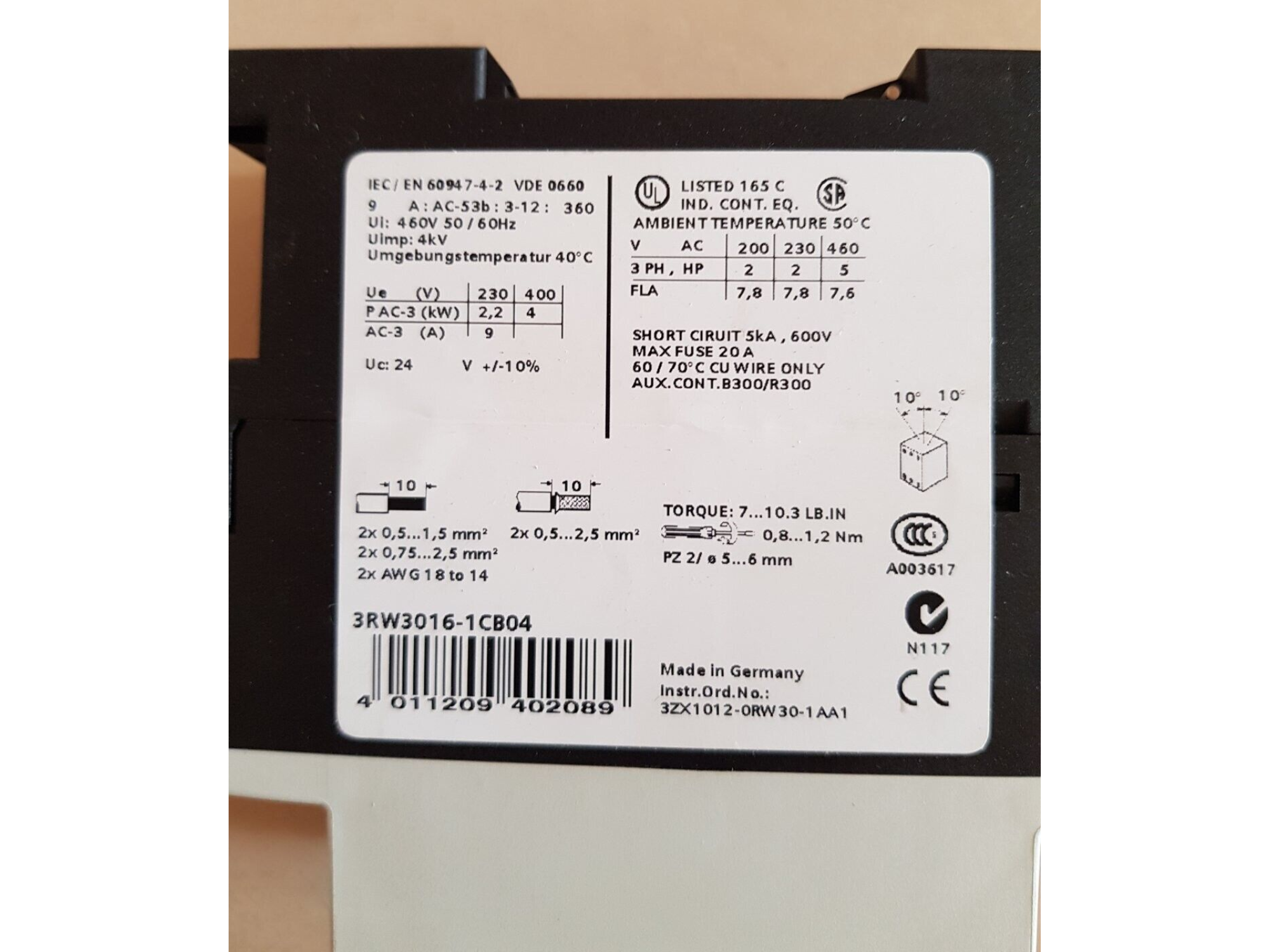 - Модель: 3RW3016-1CB04