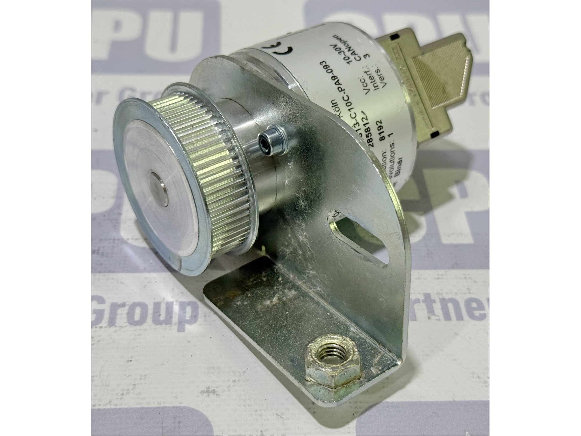 Абсолютний енкодер POSITAL FRABA OCD-C600B-0013-C10C-PA9-093 (13 bit, CANopen) з кронштейном та шківом