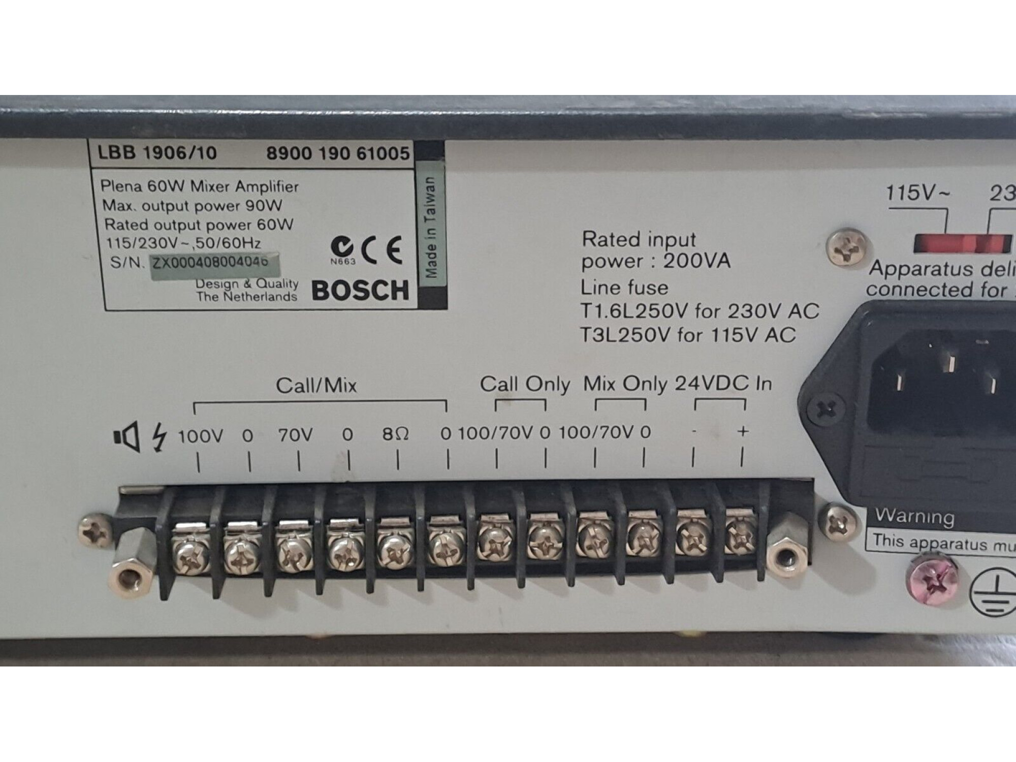 Bosch Plena LBB 1906/10 Mixer Amplifier 1 pcs