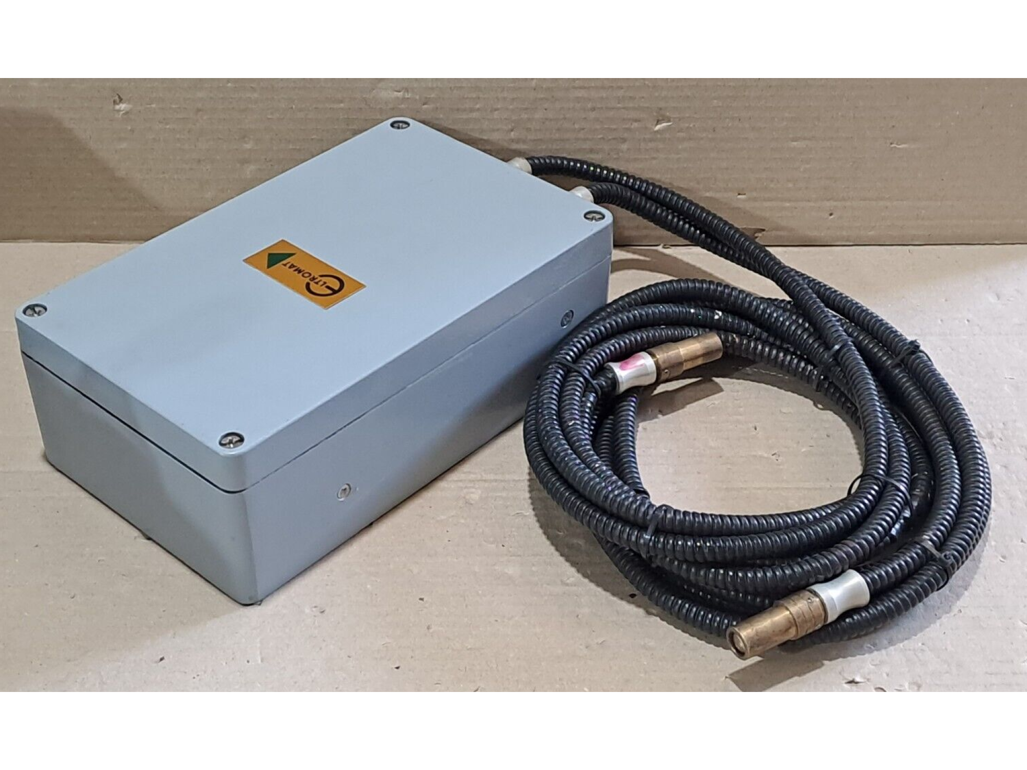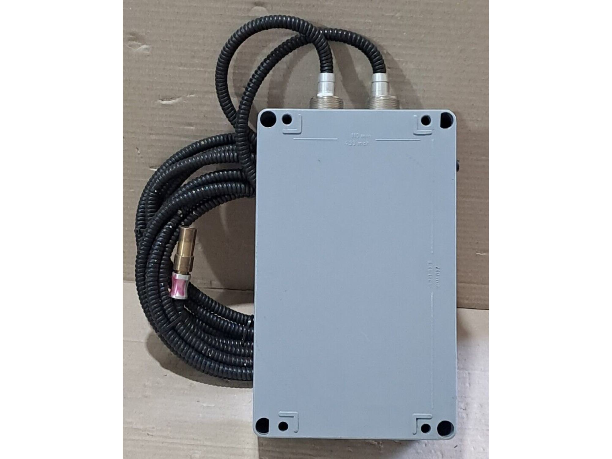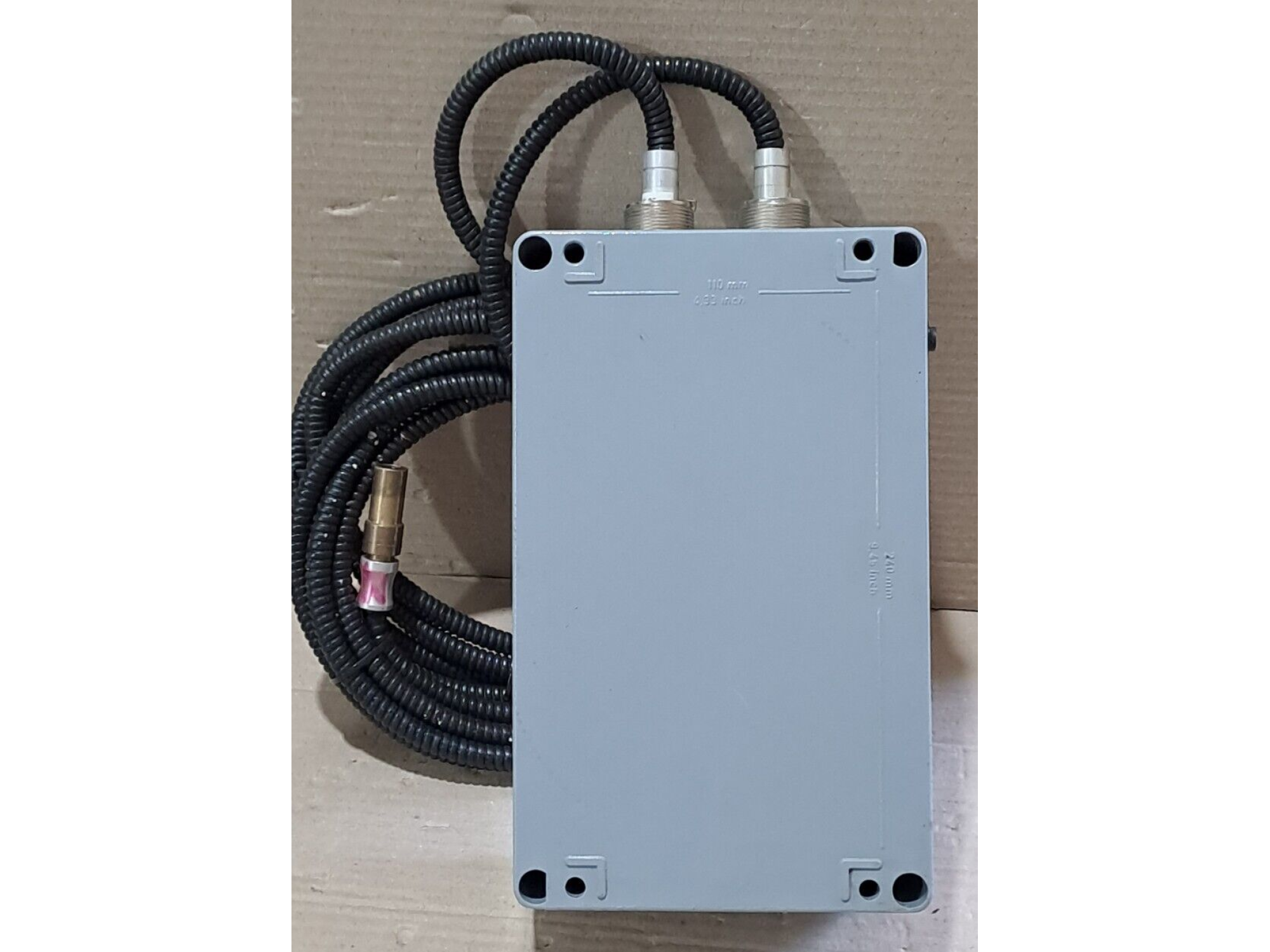 Housing: Robust grey metal, designed for industrial use, with a sealed screw-fastened closure.