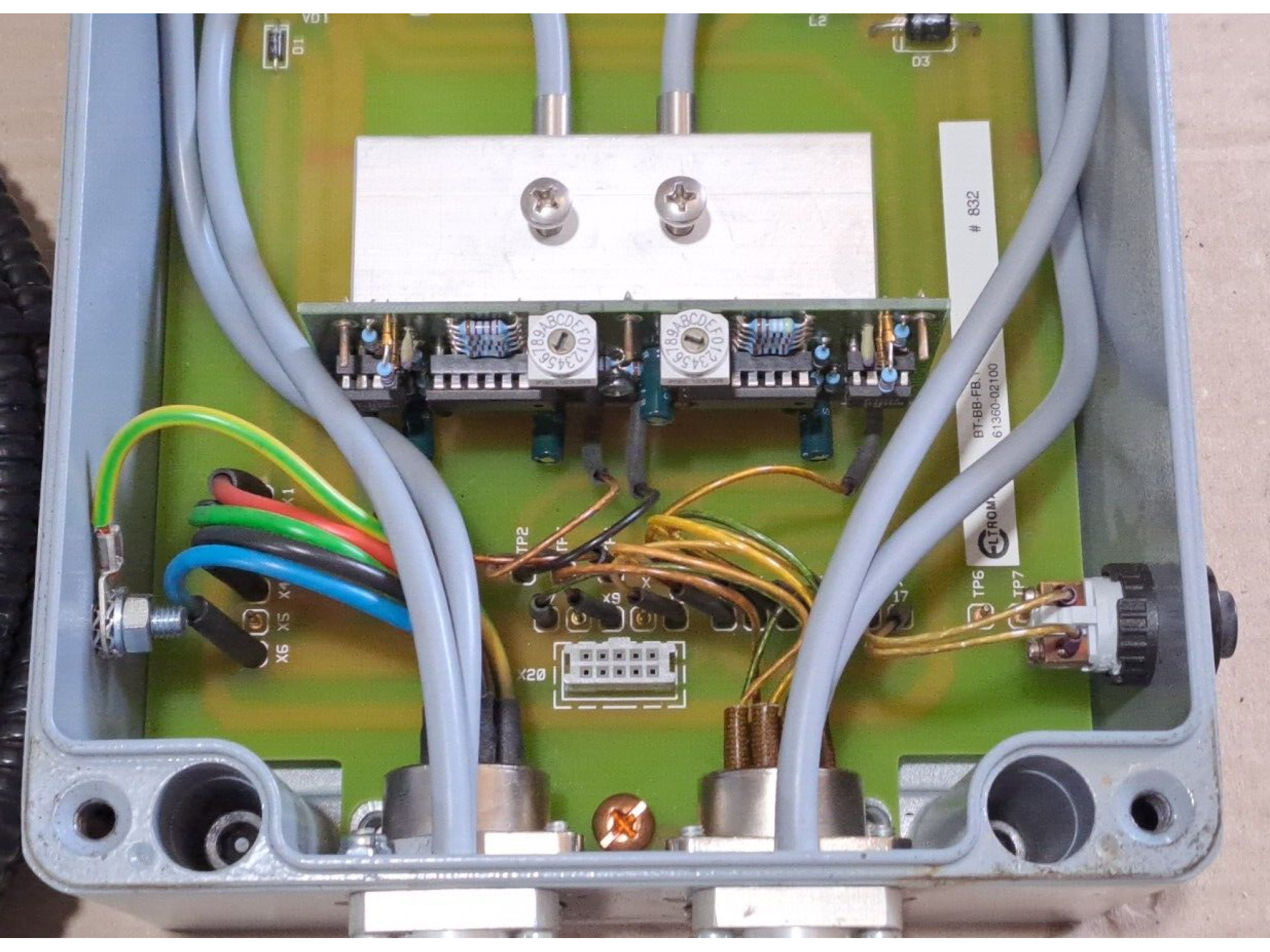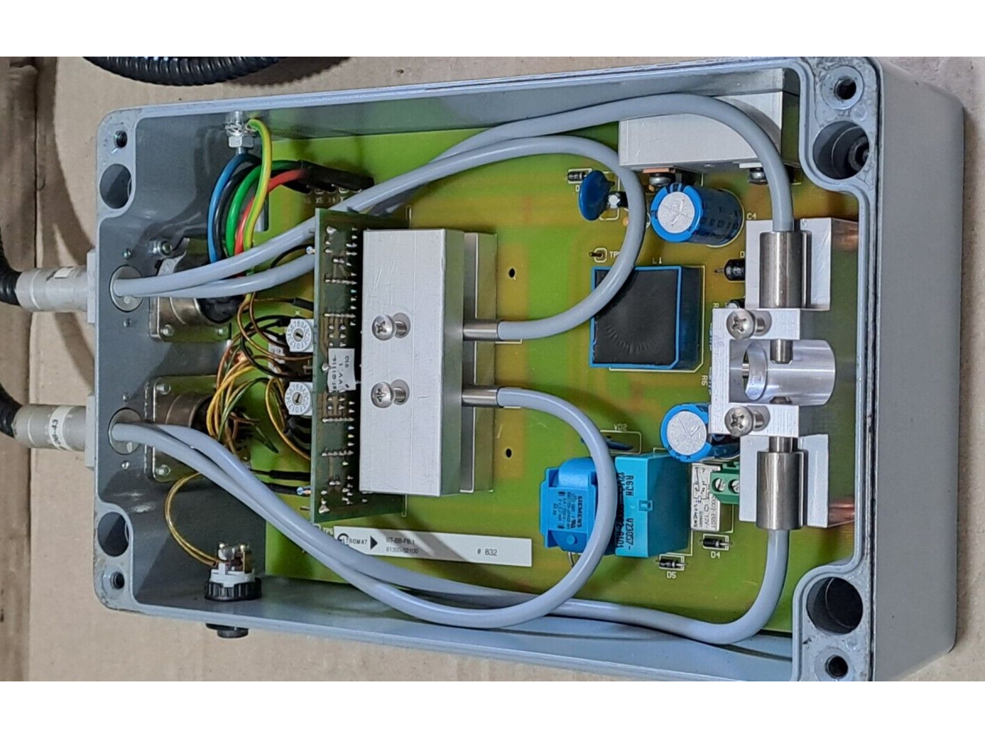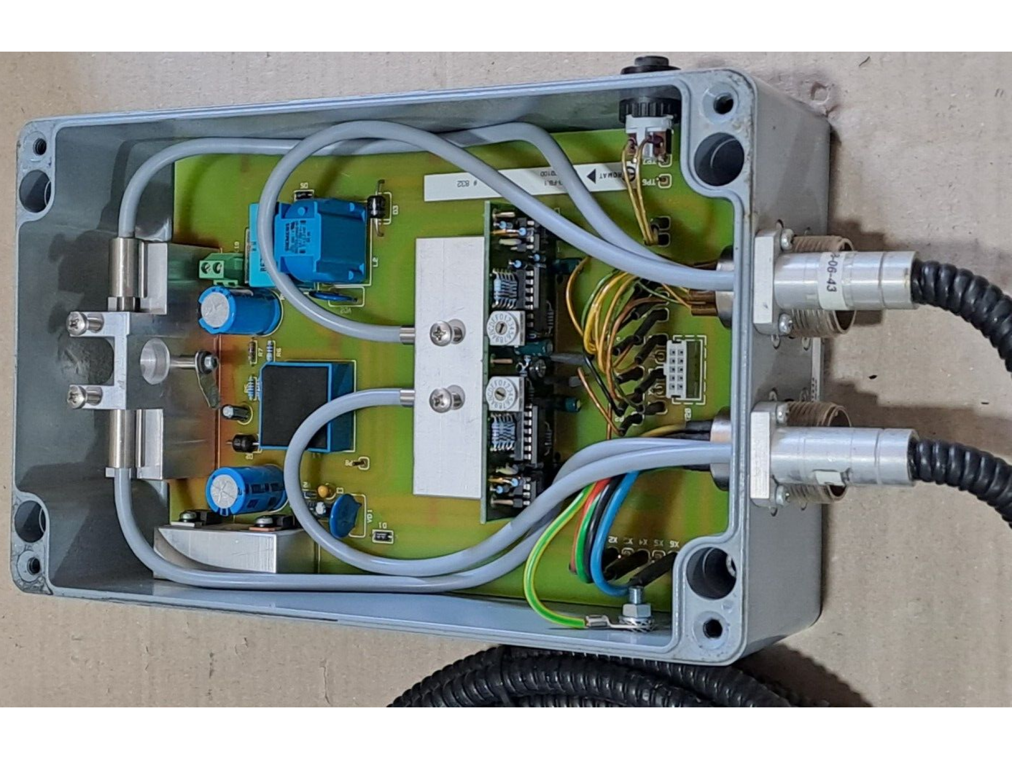 Housing: Robust grey metal, designed for industrial use, with a sealed screw-fastened closure.