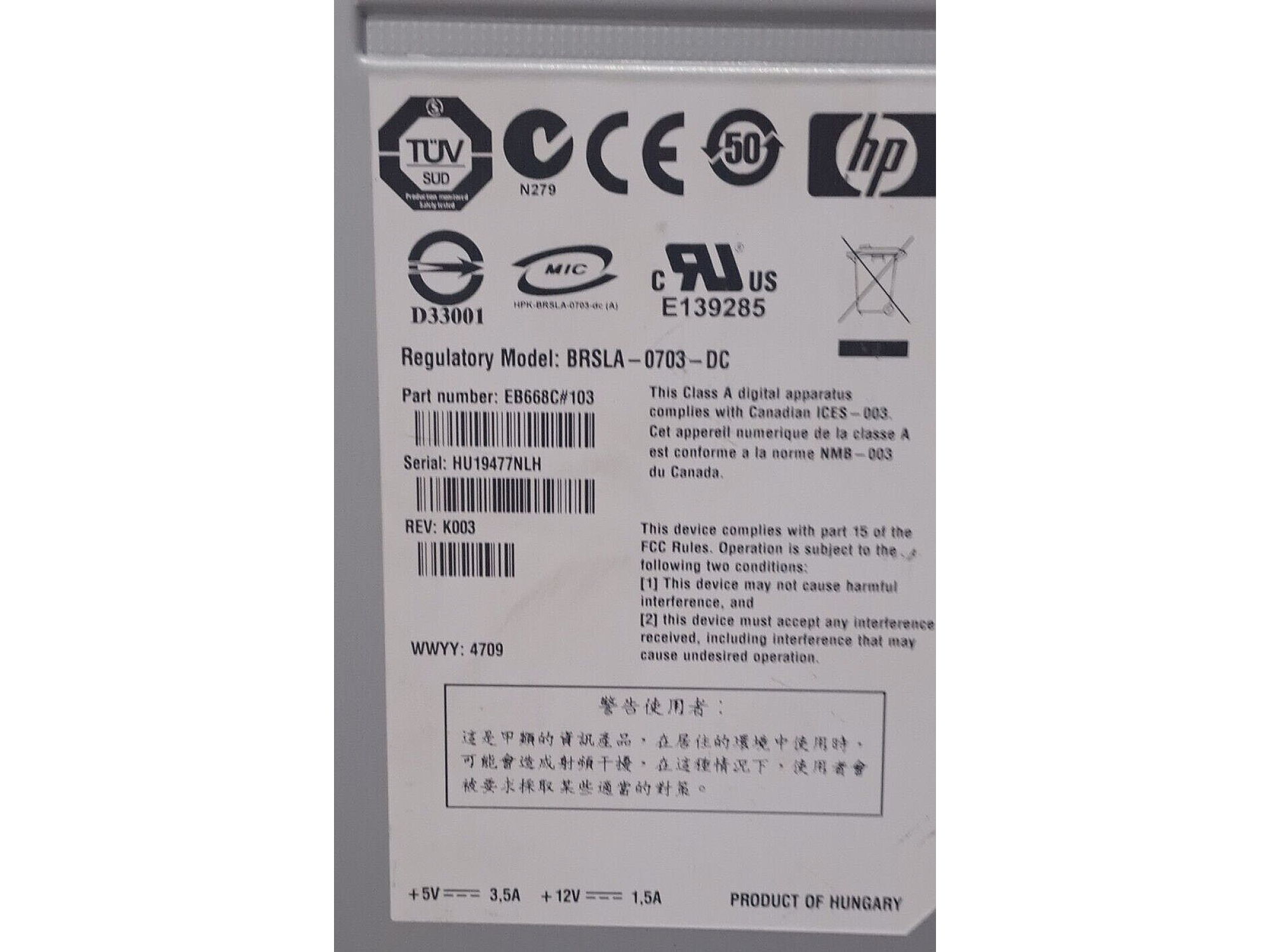 HP BRSLA-0703-DC rev K003 Tape Drive 1 PCS
