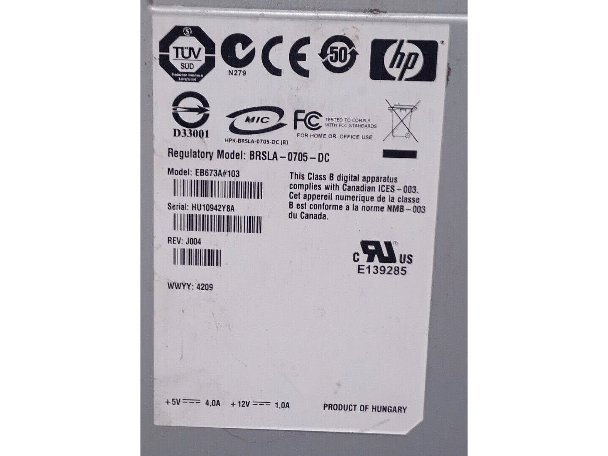HP BRSLA-0705-DC rev J004 Tape Drive 1 PCS