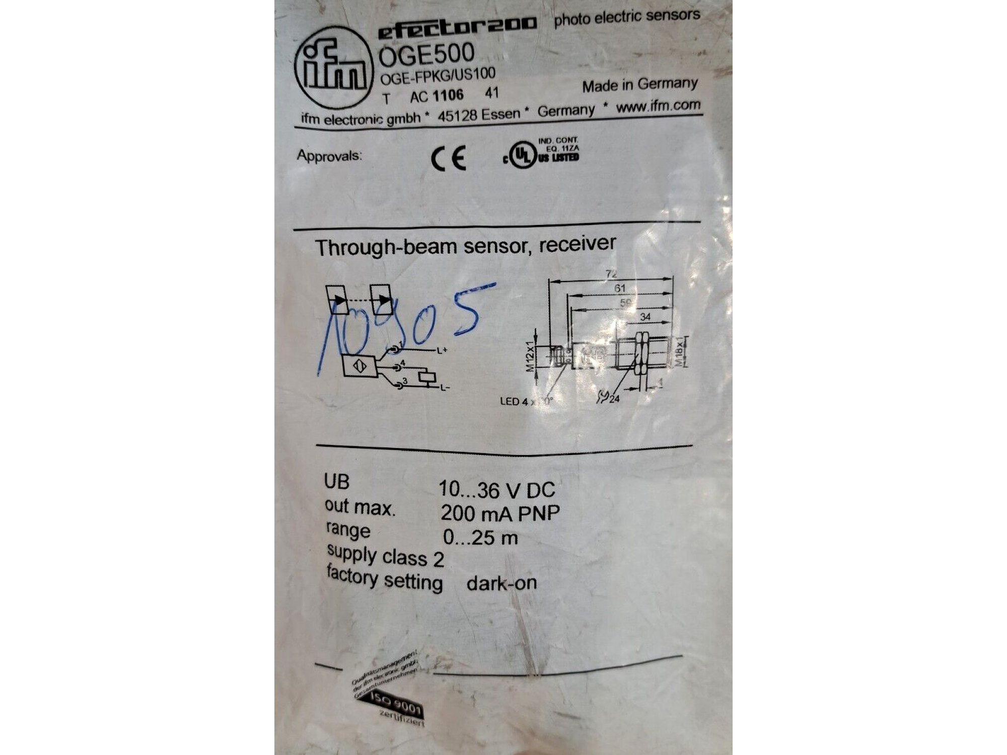 IFM EFECTOR 200 OA5109 OAT-FCKG/T PHOTO ELECTRIC SENSOR 1 PCS #AD1612#