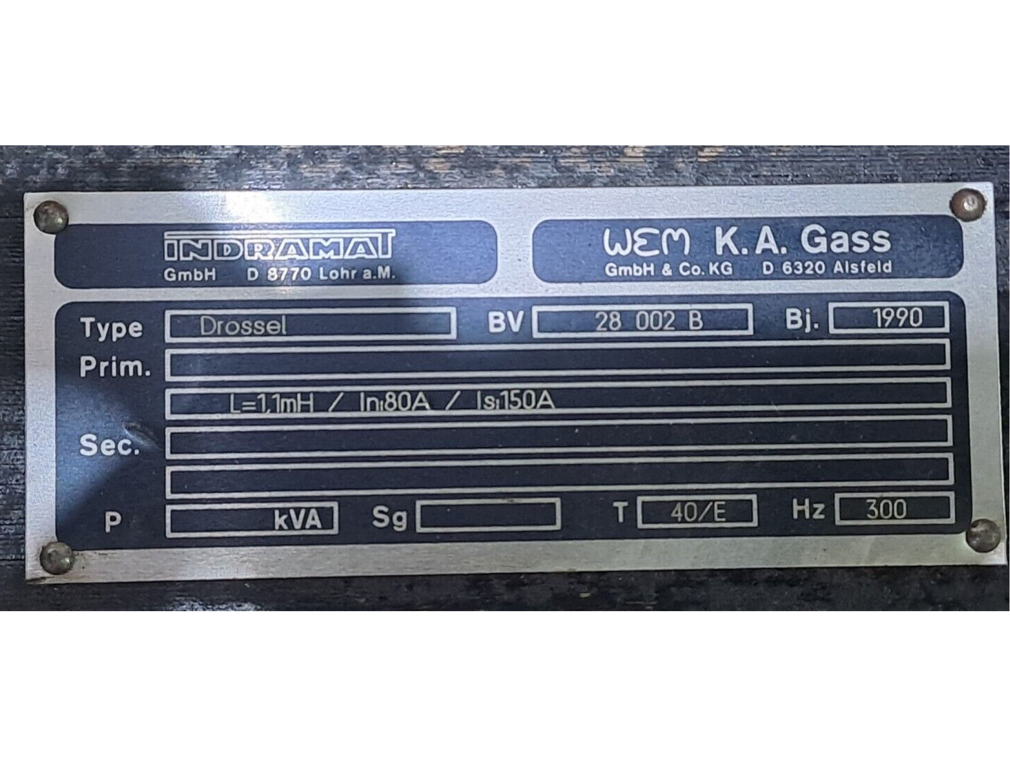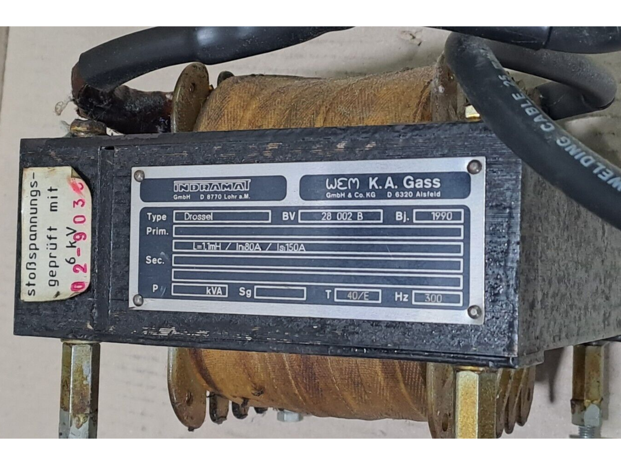 INDRAMAT Drossel BV 28 002 B Transformer 300 Hz, 1.1 MH 80A, 150A 1 PCS #BD7809#