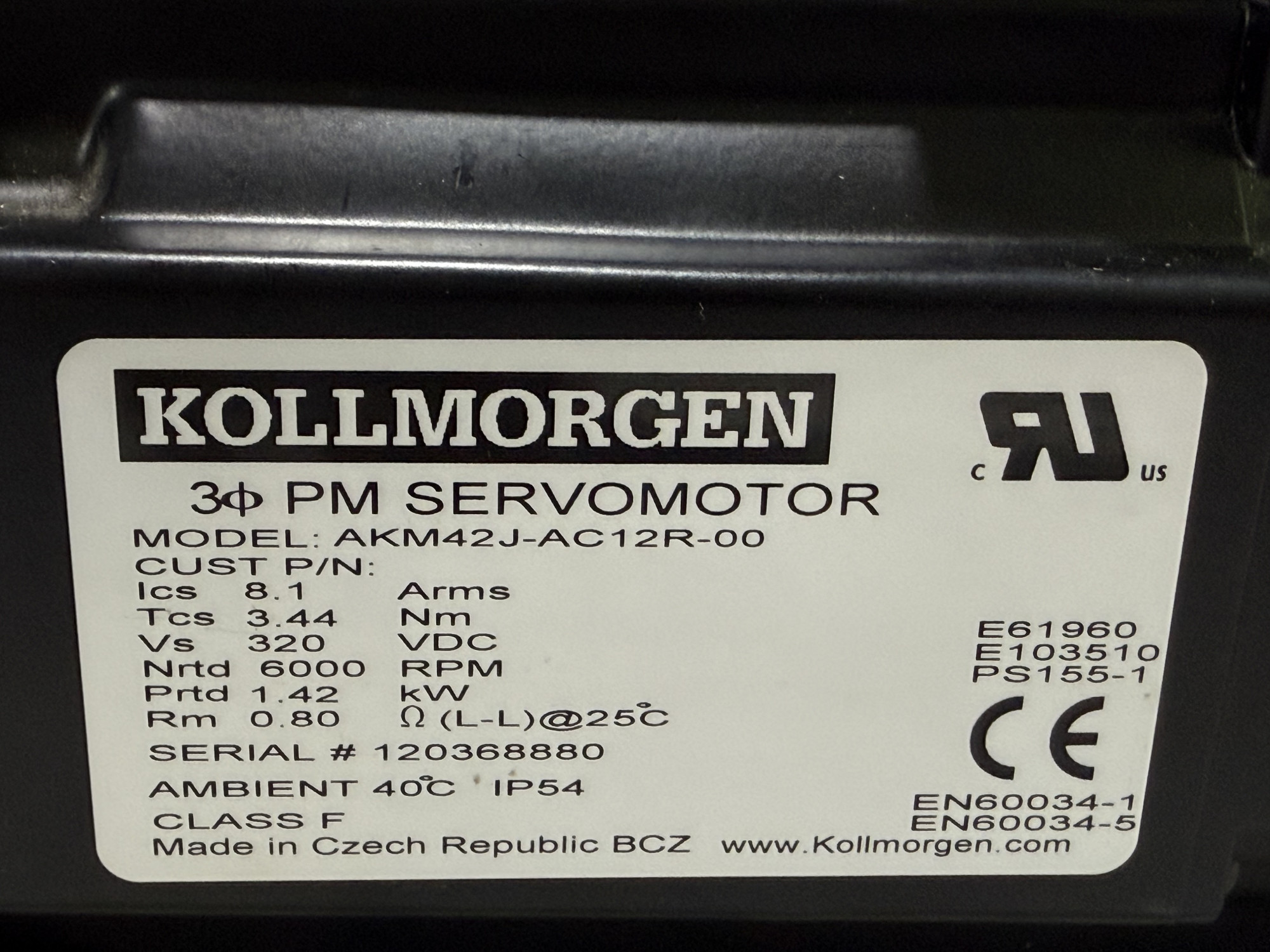 Kollmorgen AKM42J-AC12R-00 Трифазний Серводвигун з Постійними Магнітами