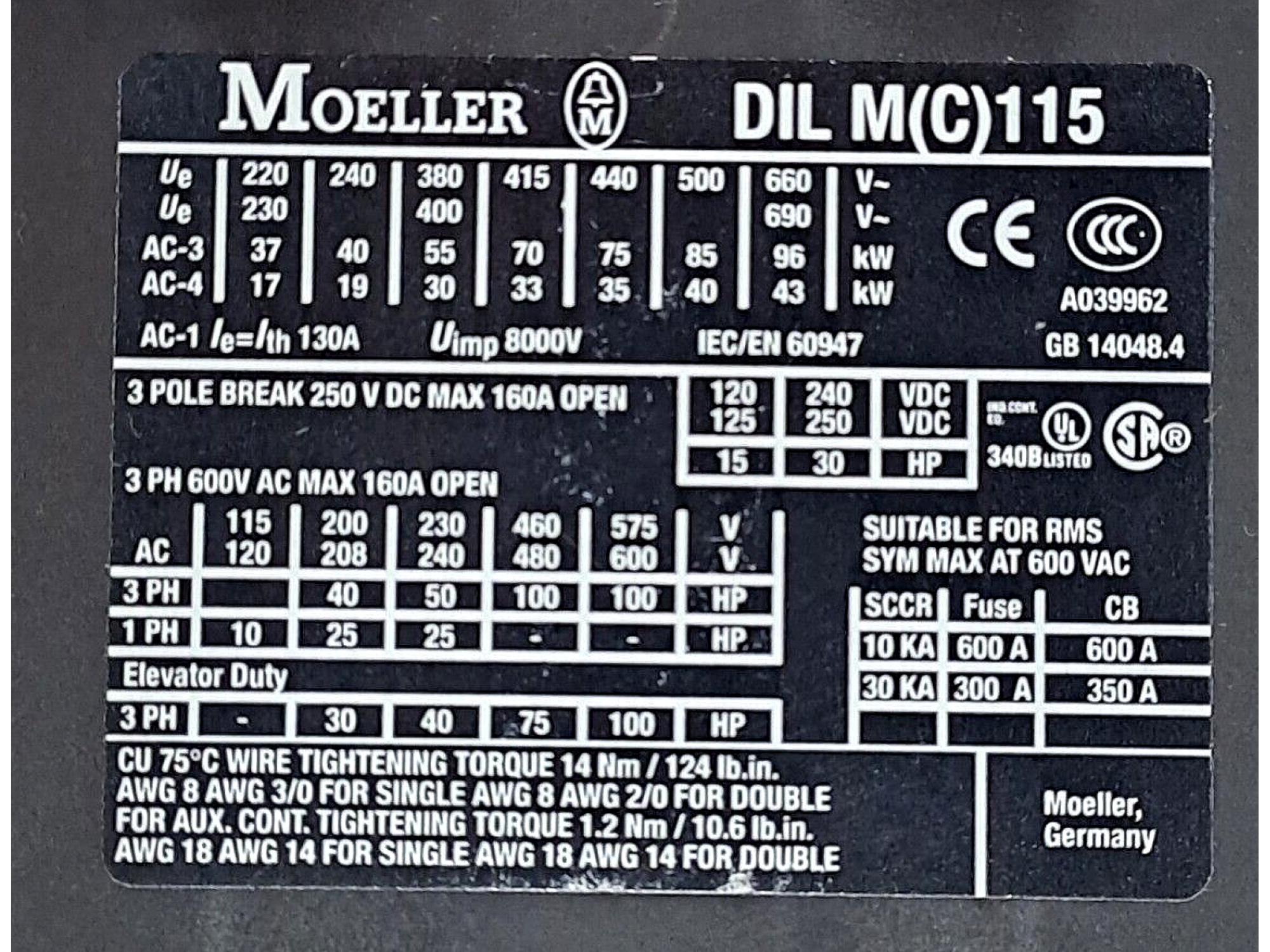 Moeller DIL M(C) 115 Contactor #G1362#