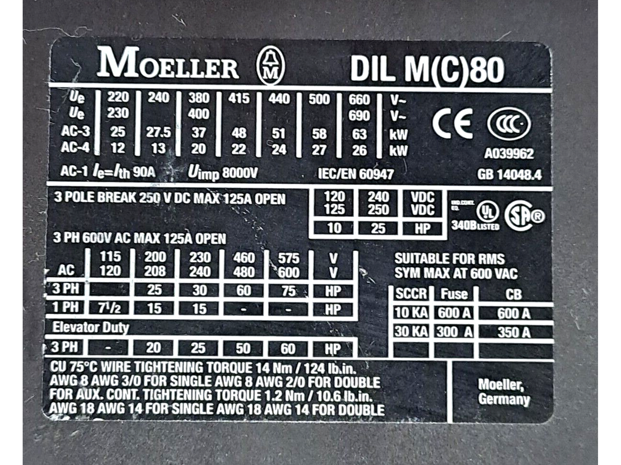 Moeller DIL M(C) 80 1 PCS Contactor #G1362#