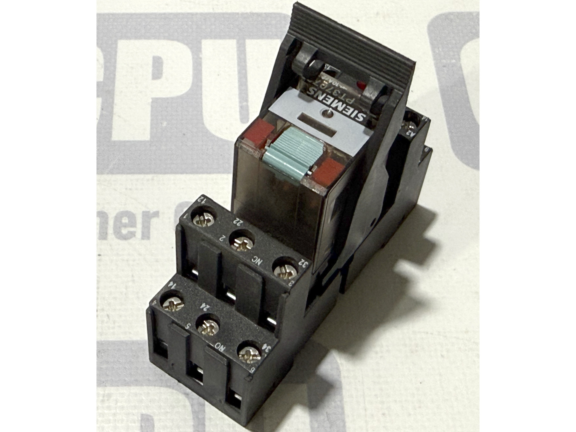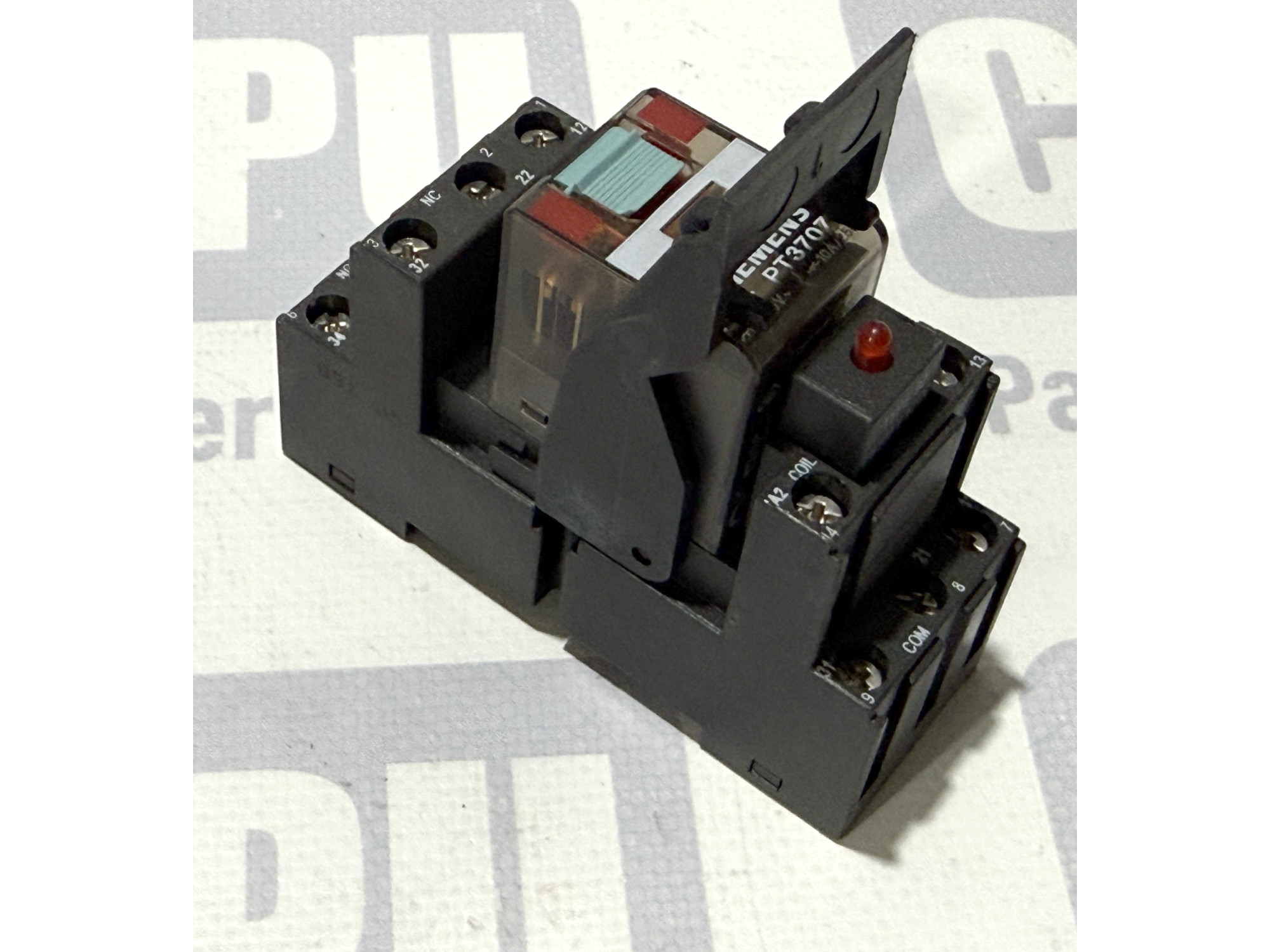 Опис товару Професійне промислове проміжне реле від відомого німецького бренду Siemens. Модель LZX:PT370730 оснащена трьома парами перемикаючих контактів (3PDT) і розрахована на керуючу напругу 230В змінного струму. Реле постачається в комплекті з монтажною колодкою (розеткою) Schrack PT78703 для кріплення на DIN-рейку. Пристрій має вбудований світлодіодний індикатор стану (червоний LED) та механічну кнопку для ручного тестування контактів. Це надійне рішення для автоматизації промислових процесів та захисту ланцюгів керування.