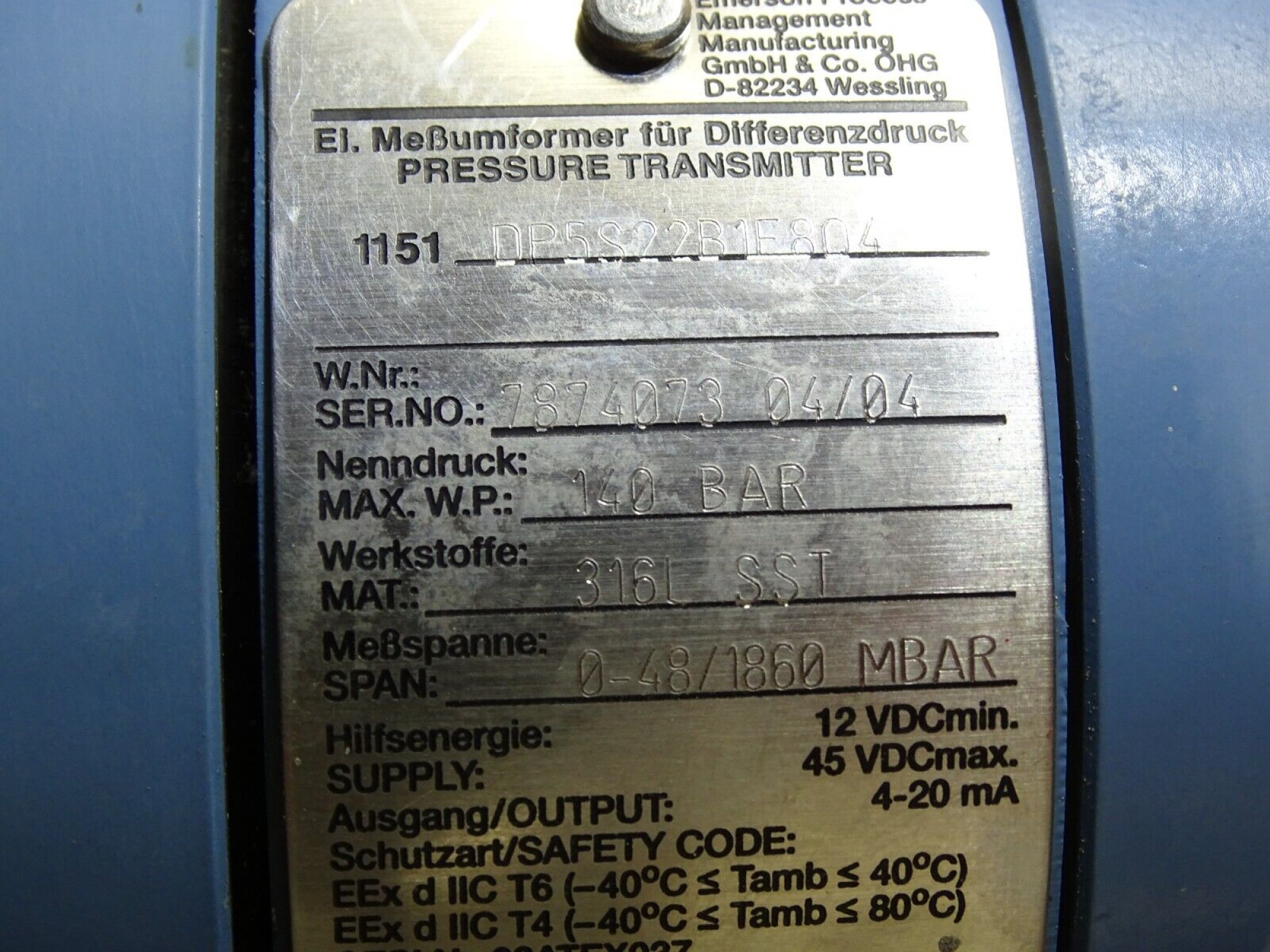ROSEMOUNT 1151 1151DP4S12I1 + 01166-0021-0002 Pressure transmitter 1 pcs