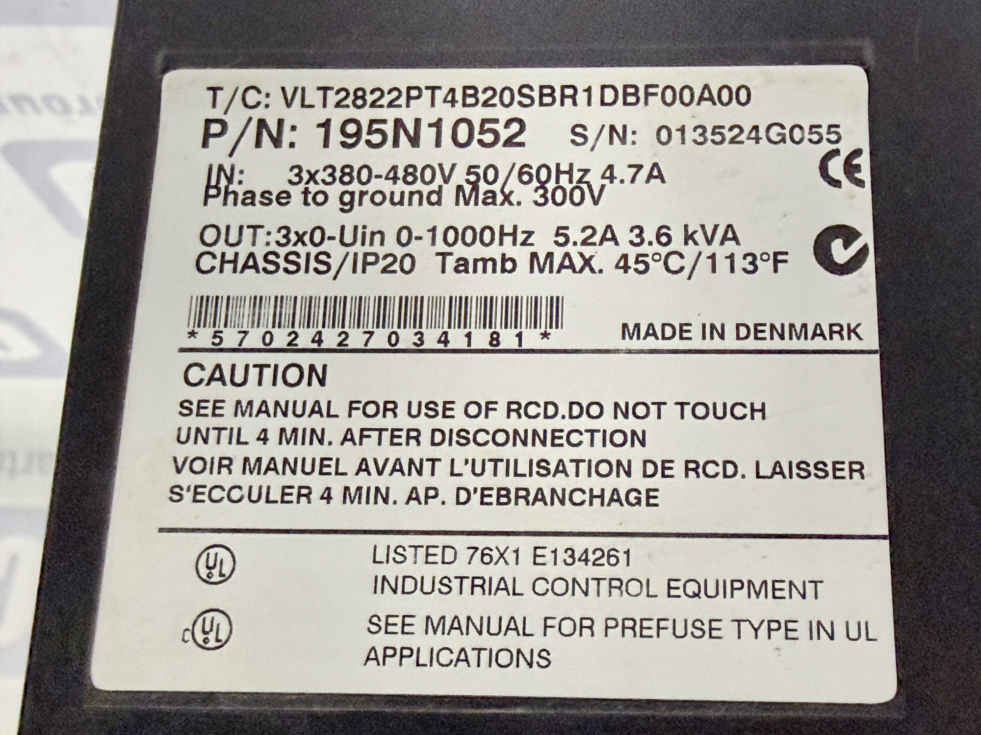 - Модель: VLT2822PT4B20SBR1DBF00A00