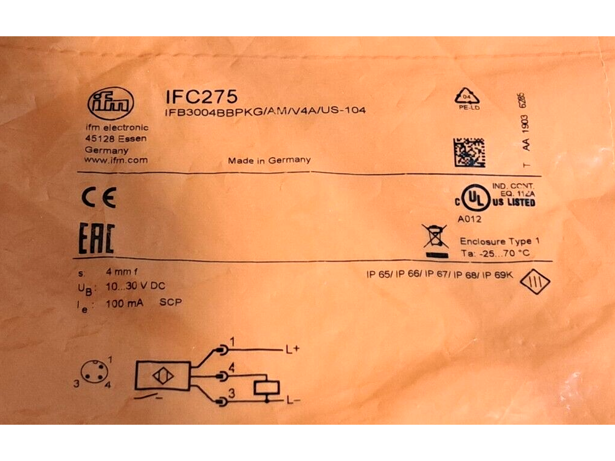 IFM IFC275 IFB3004BBPKG/AM/V4A/US-104 Inductive full-metal sensor 1 PCS #AD1612#