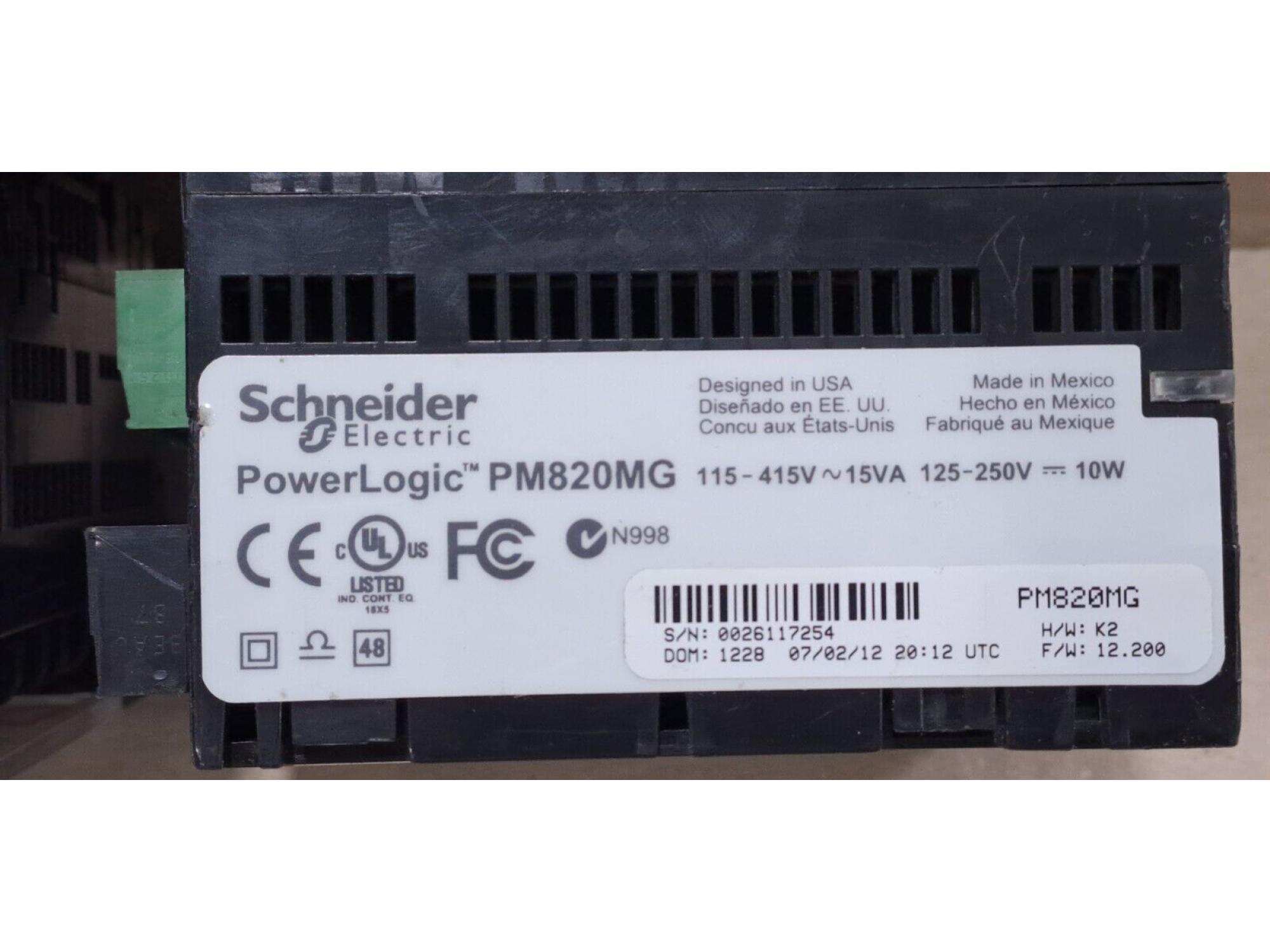 The Schneider Electric Power Logic PM820MG is an advanced Multifunctional Power Meter from the widely used Power Logic PM800 series by Schneider Electric. Designed in the USA and Made in Mexico, the PM820MG is engineered for precise measurement, comprehensive monitoring, and detailed analysis of electrical parameters in low voltage power distribution systems within industrial, commercial, and critical power facilities.