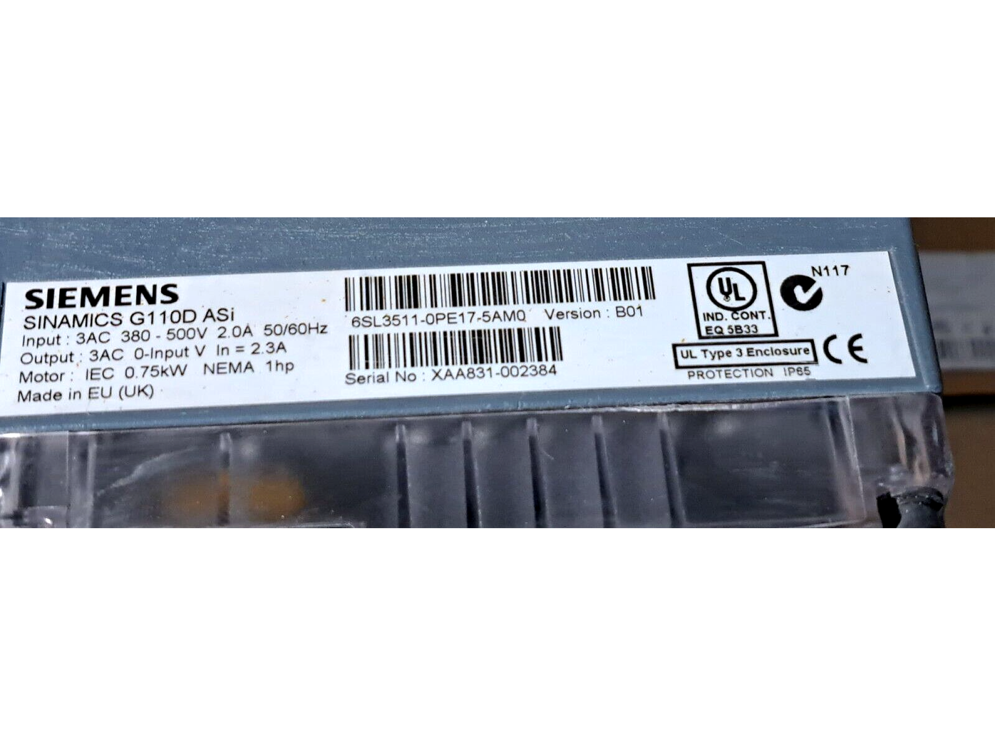 Siemens 6SL3511-0PE17-5AM0 G110D Distributed Frequency Inverter, 0.75kW / 1hp, IP65