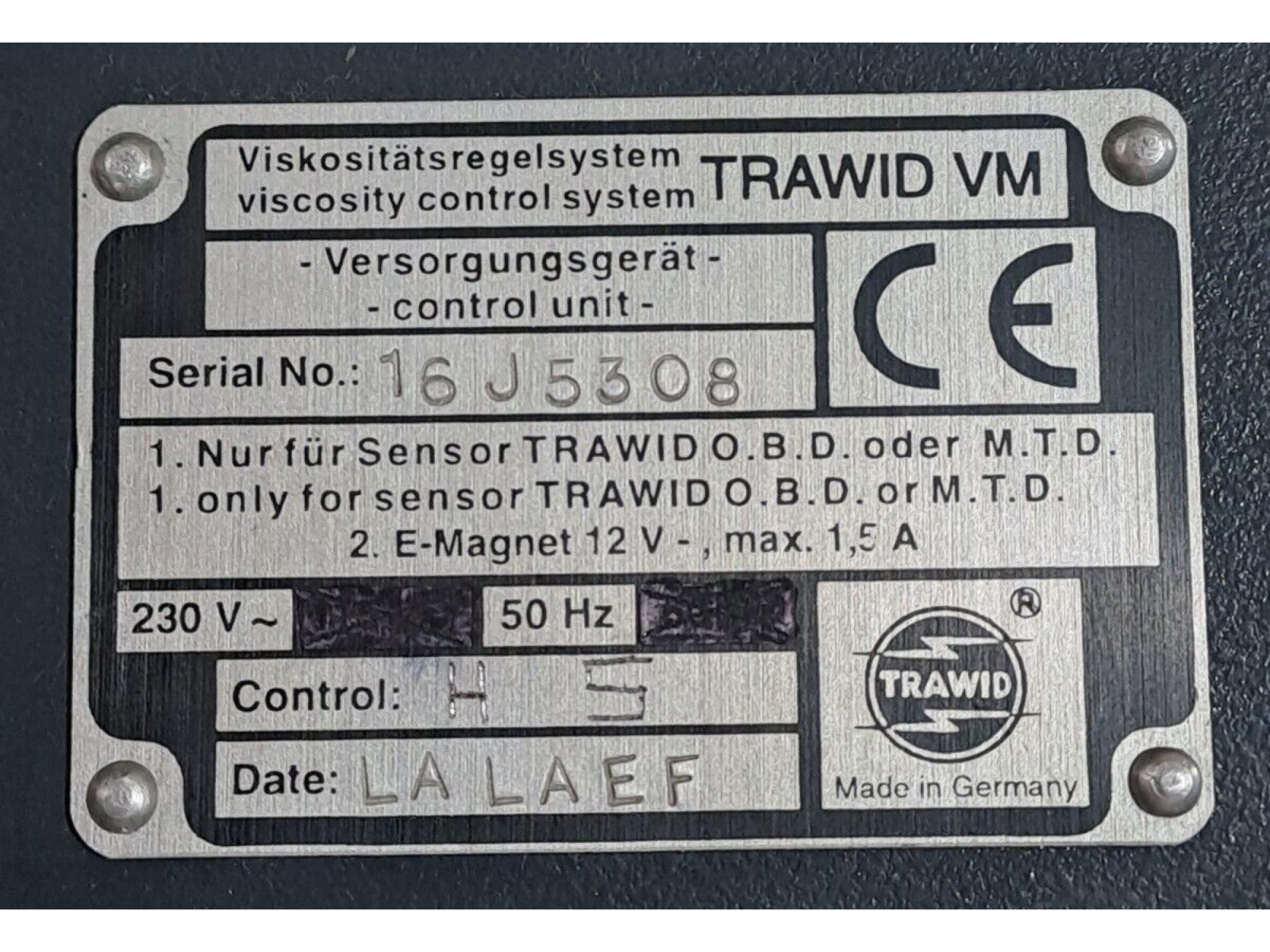 TRAWID VM viscosity control system Control Unit 16J5308 230V 50Hz 1 pcs #D7809#