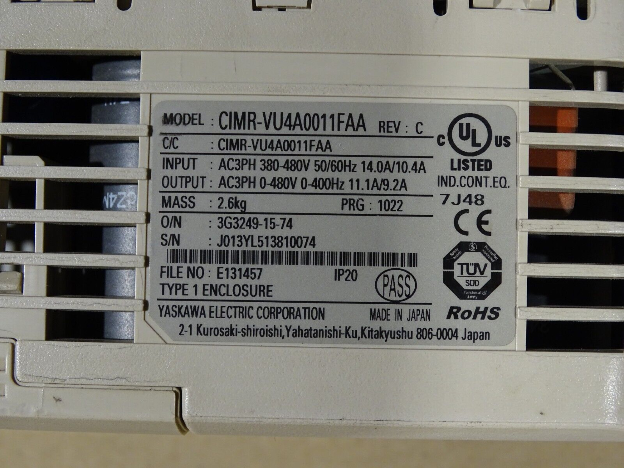 YASKAWA CIMR-VU4A0011FAA 1 Pcs #SV1362#